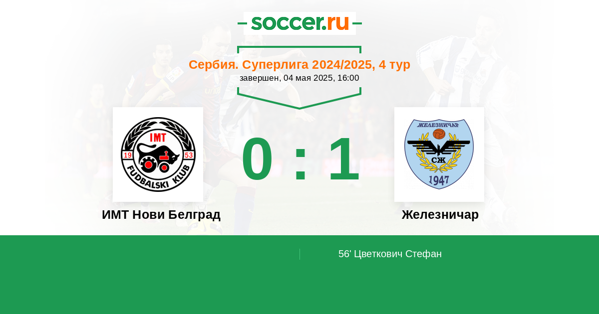 ИМТ Нови Белград - Железничар: обзор матча 4 мая 2025