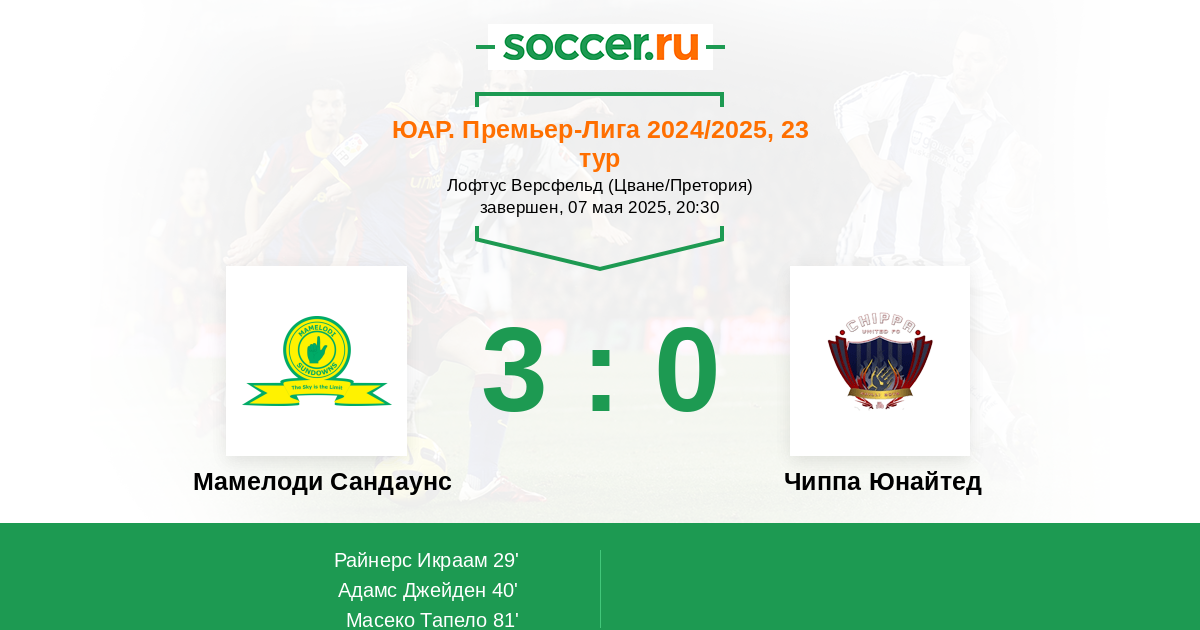 Мамелоди Сандаунс - Чиппа Юнайтед: обзор матча 7 мая 2025