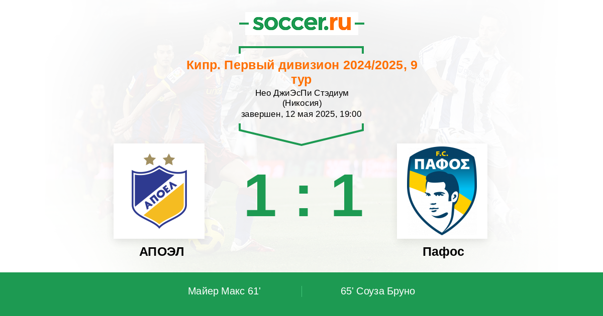 АПОЭЛ - Пафос: обзор матча 12 мая 2025