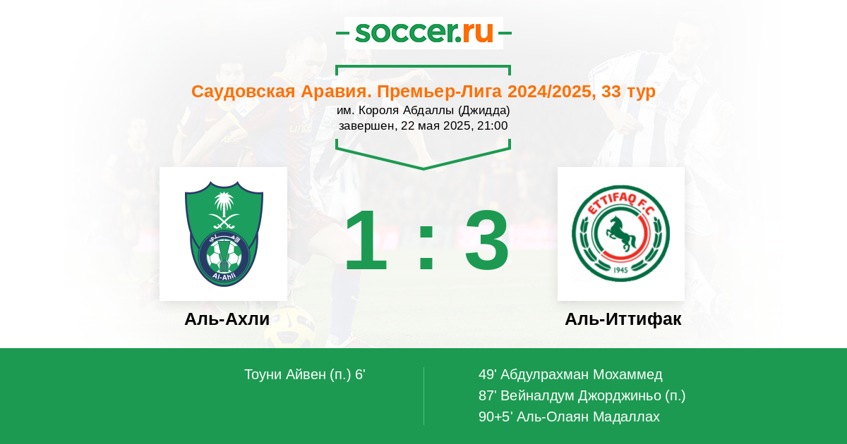 Аль-Ахли - Аль-Иттифак: обзор матча 22 мая 2025