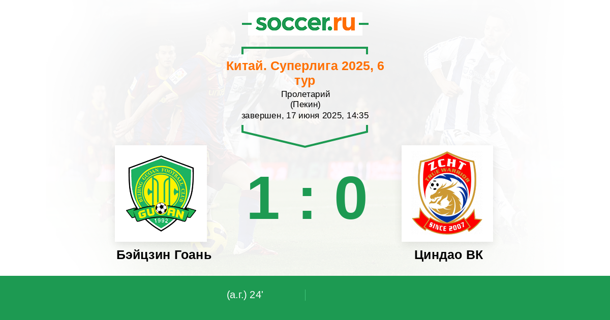 Бэйцзин Гоань - Циндао ВК: обзор матча 17 июня 2025