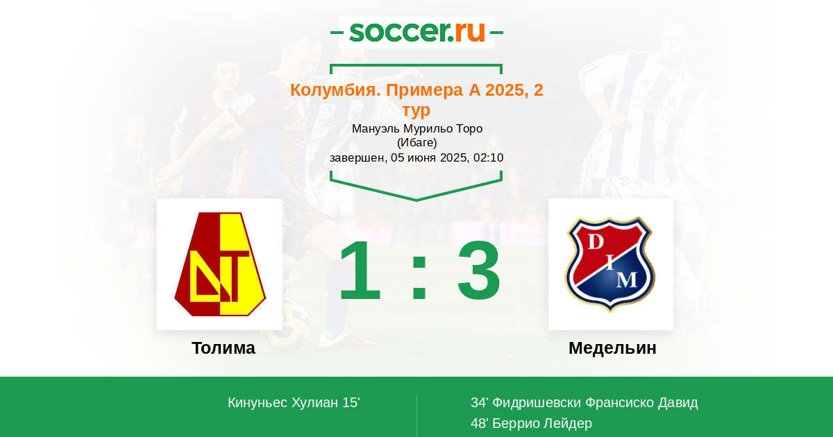 Толима - Медельин: обзор матча 5 июня 2025