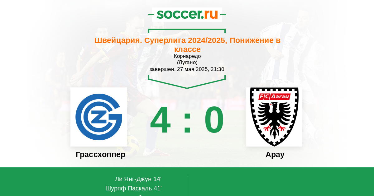 Грассхоппер - Арау: обзор матча 27 мая 2025