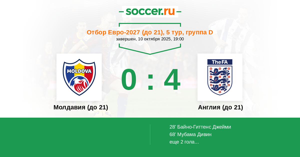 Молдавия (до 21) - Англия (до 21): обзор матча 10 октября 2025