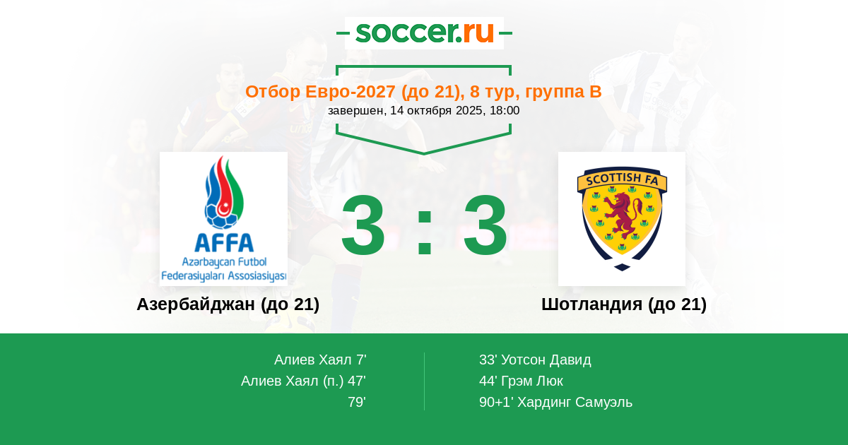 Азербайджан (до 21) - Шотландия (до 21): обзор матча 14 октября 2025