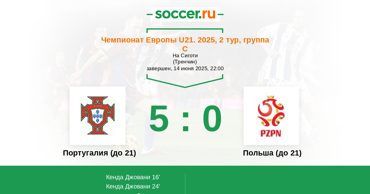Португалия (до 21) - Польша (до 21): обзор матча 14 июня 2025