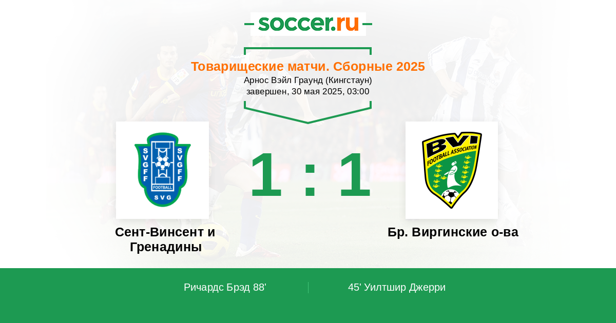 Сент-Винсент и Гренадины - Бр. Виргинские о-ва: обзор матча 30 мая 2025