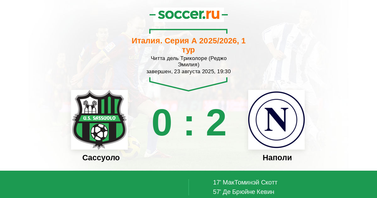 Сассуоло - Наполи: обзор матча 23 августа 2025