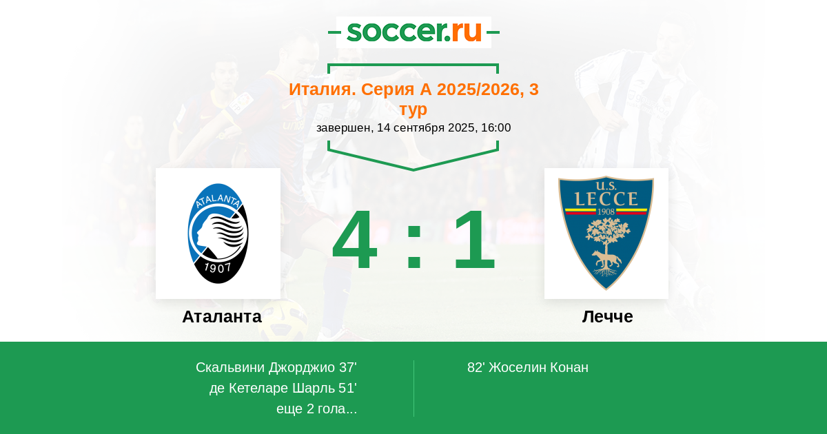 Аталанта - Лечче: обзор матча 14 сентября 2025