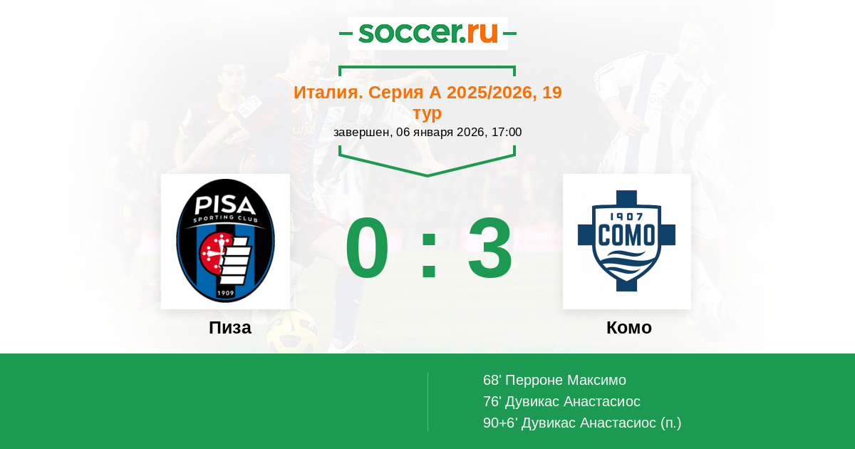 Пиза - Комо: обзор матча 6 января 2026