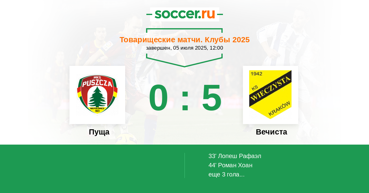 Пуща - Вечиста: обзор матча 5 июля 2025