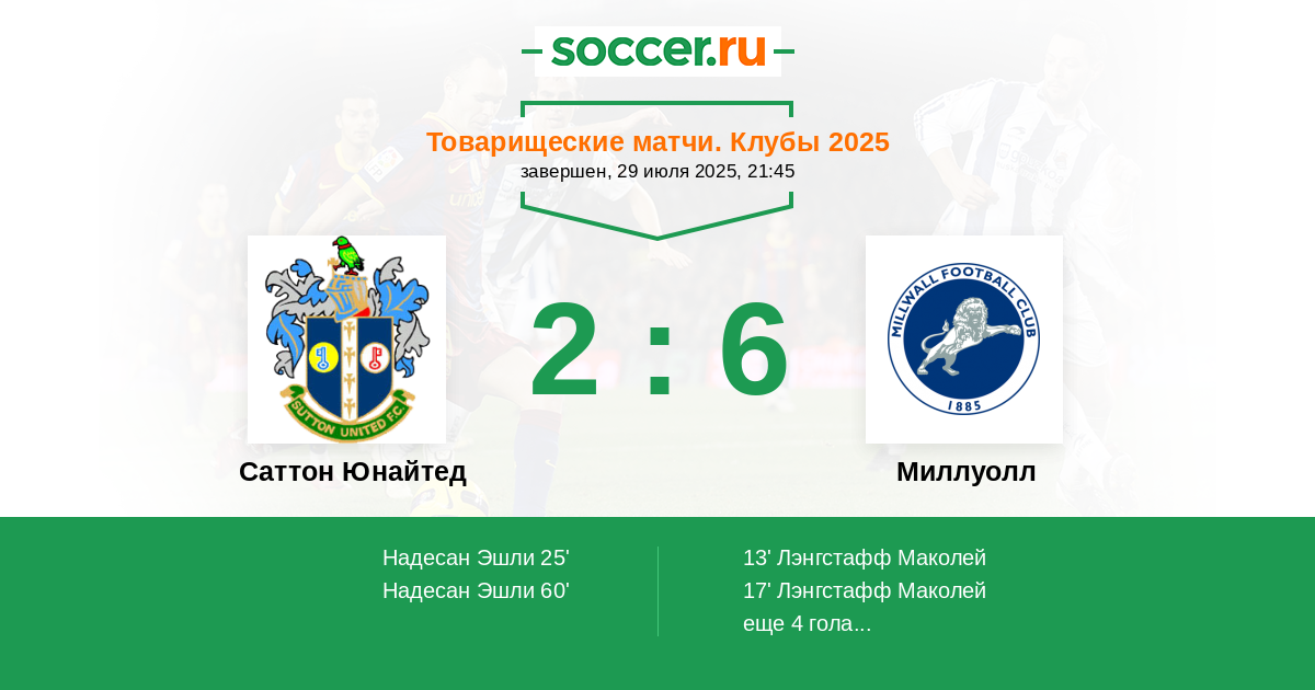 Саттон Юнайтед - Миллуолл: обзор матча 29 июля 2025