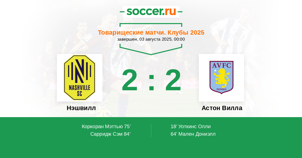 Нэшвилл - Астон Вилла: обзор матча 3 августа 2025