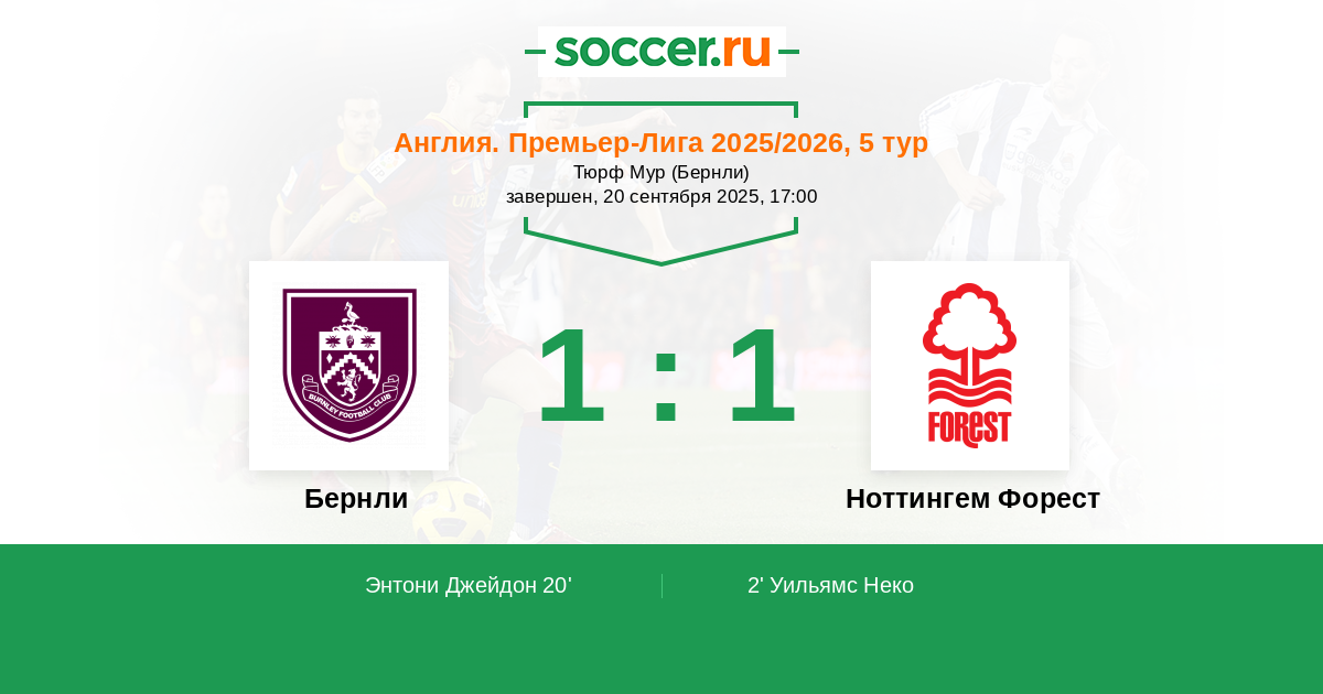Бернли - Ноттингем Форест: обзор матча 20 сентября 2025