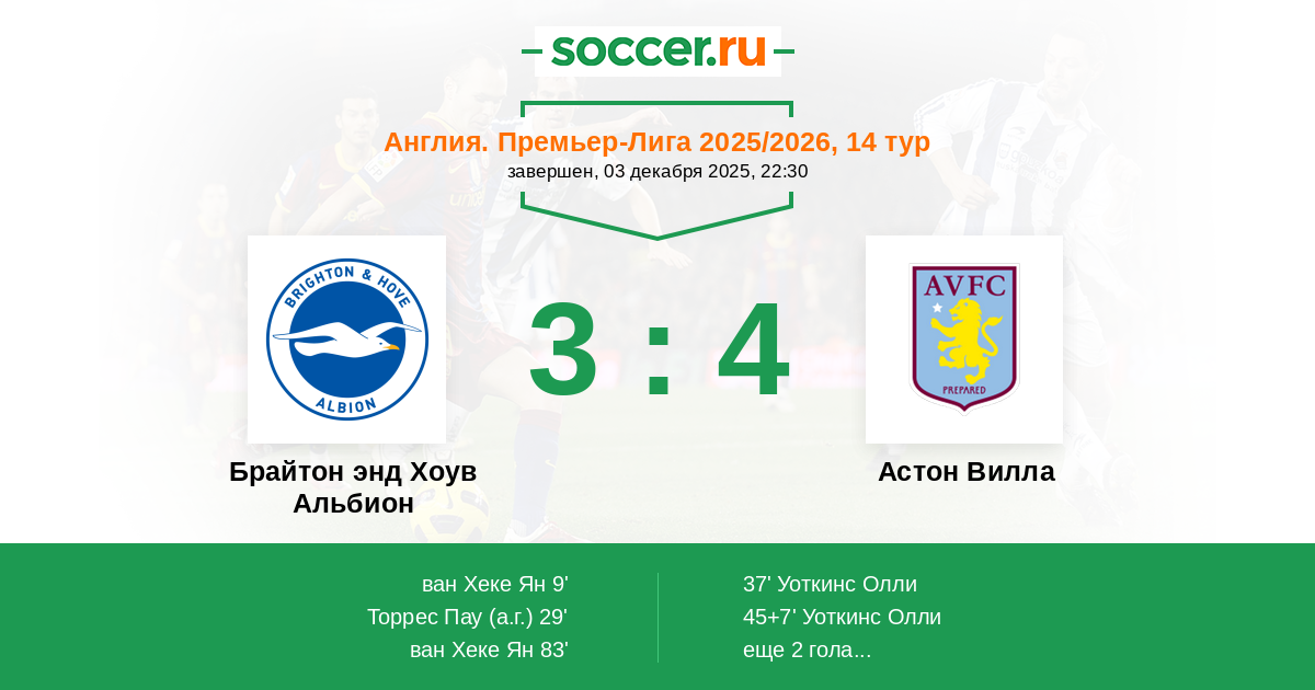 Брайтон энд Хоув Альбион - Астон Вилла: обзор матча 3 декабря 2025
