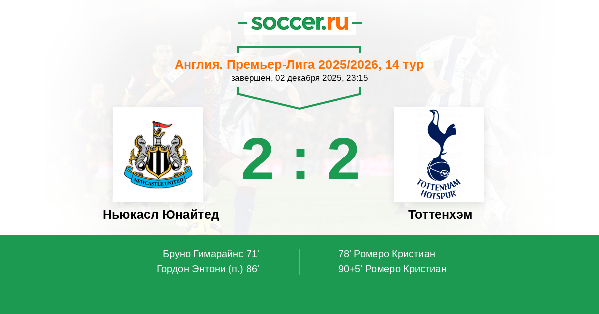 Ньюкасл Юнайтед - Тоттенхэм: обзор матча 2 декабря 2025