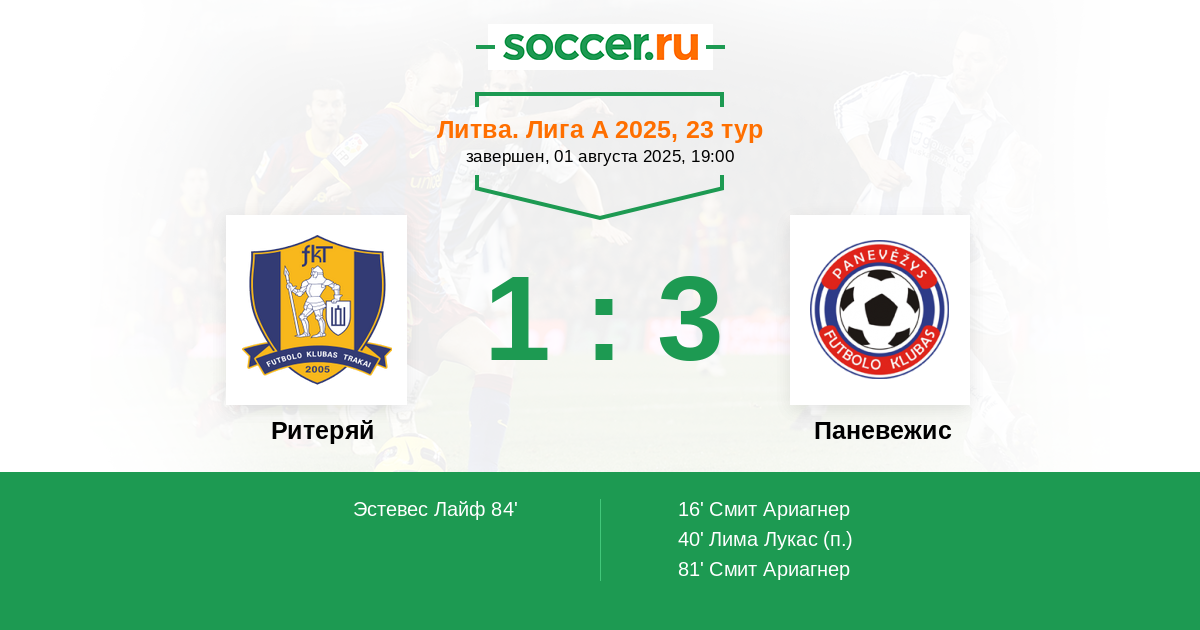 Ритеряй - Паневежис: обзор матча 1 августа 2025