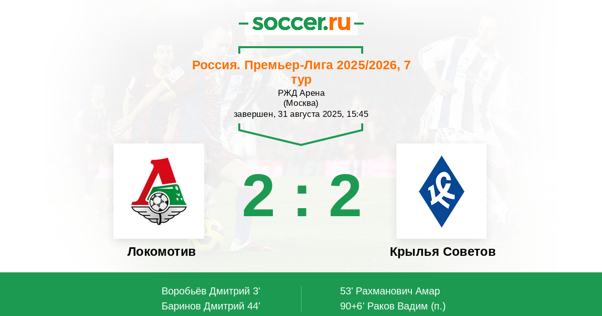 Локомотив - Крылья Советов: обзор матча 31 августа 2025