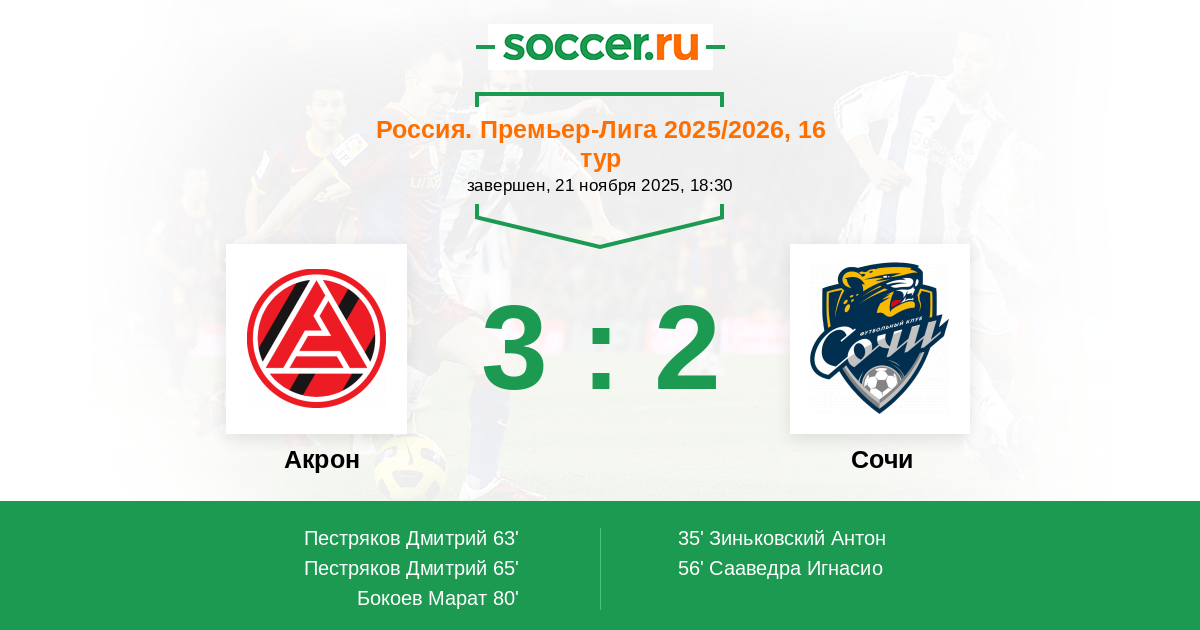 Акрон - Сочи: обзор матча 21 ноября 2025