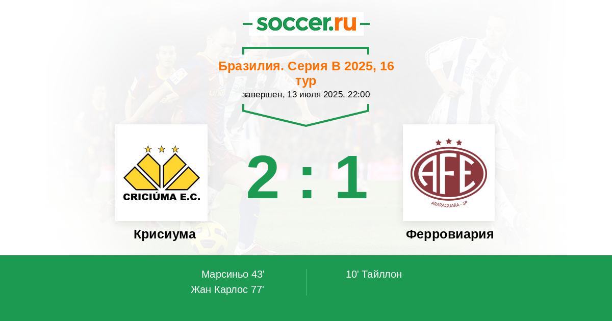 Крисиума - Ферровиария: обзор матча 13 июля 2025