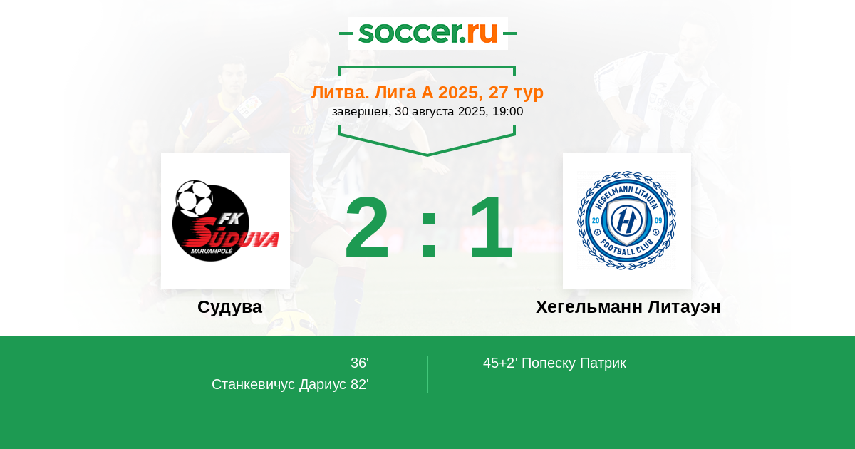 Судува - Хегельманн Литауэн: обзор матча 30 августа 2025