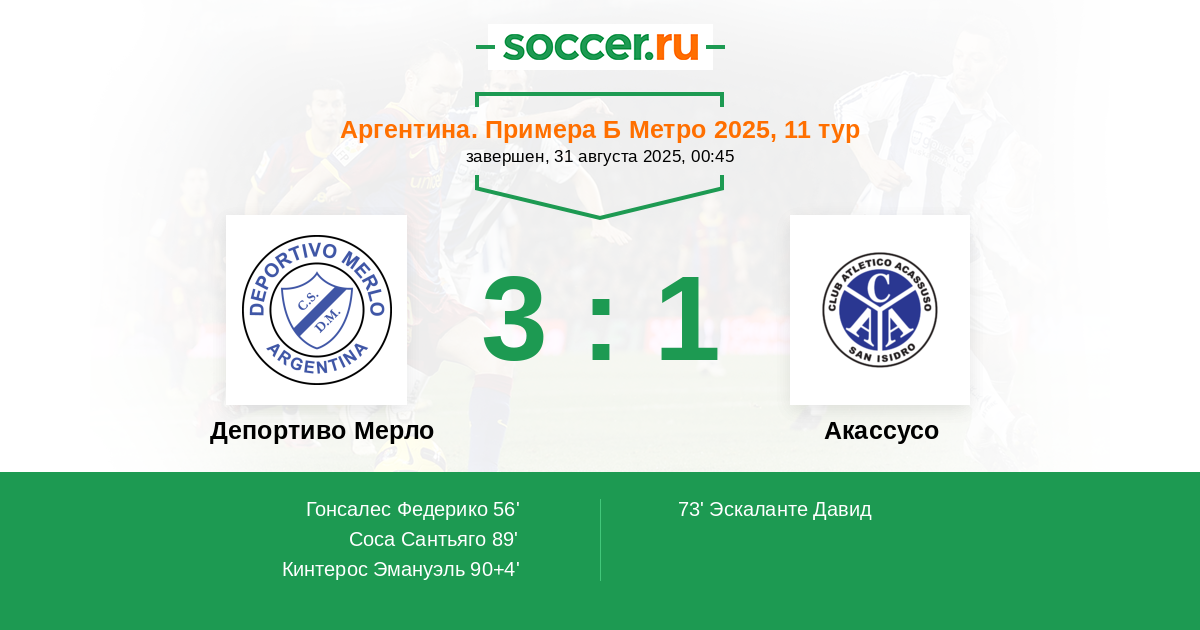 Депортиво Мерло - Акассусо: обзор матча 31 августа 2025