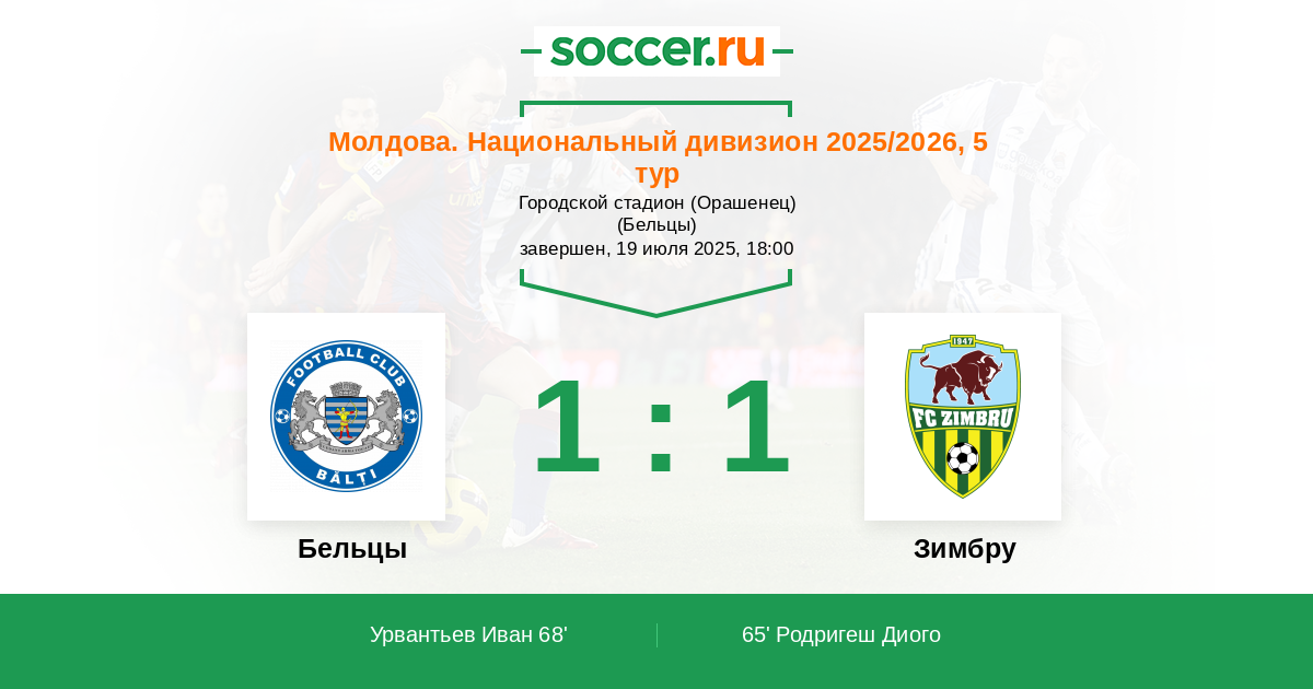 Бельцы - Зимбру: обзор матча 19 июля 2025
