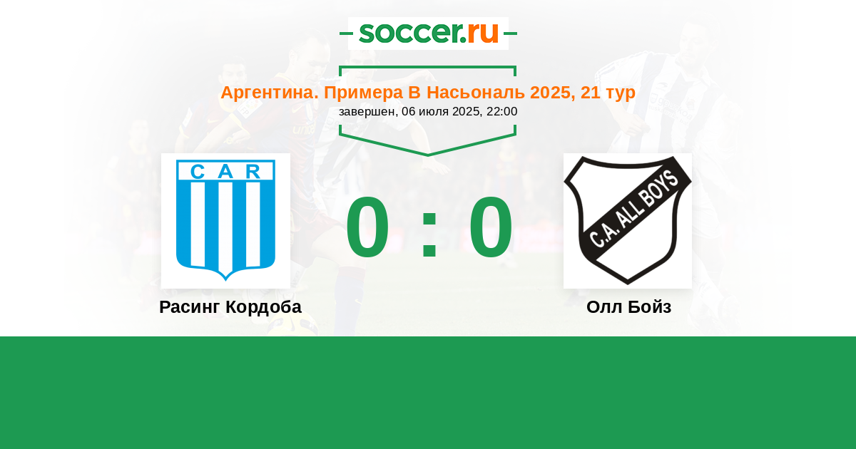Расинг Кордоба - Олл Бойз: обзор матча 6 июля 2025