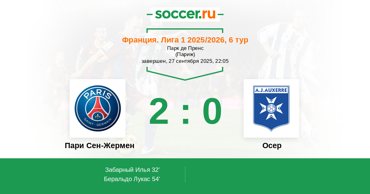 Пари Сен-Жермен - Осер: обзор матча 27 сентября 2025