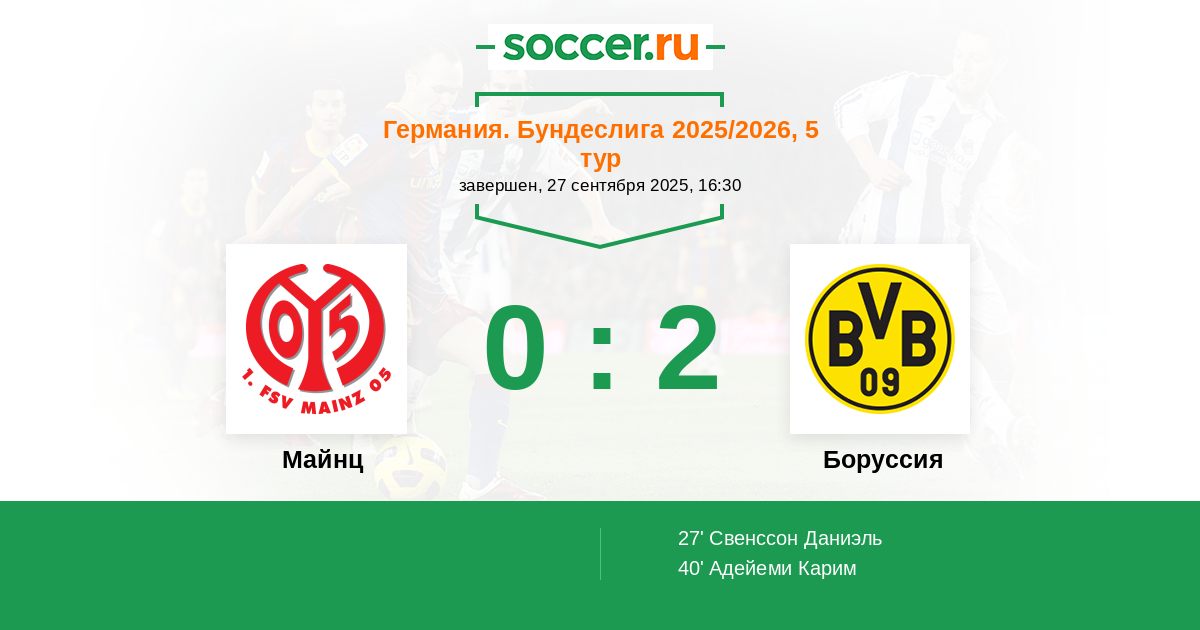 Майнц - Боруссия: обзор матча 27 сентября 2025