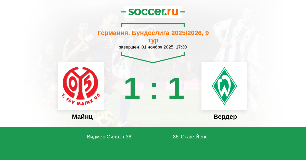 Майнц - Вердер: обзор матча 1 ноября 2025