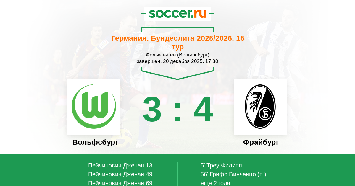 Вольфсбург - Фрайбург: обзор матча 20 декабря 2025