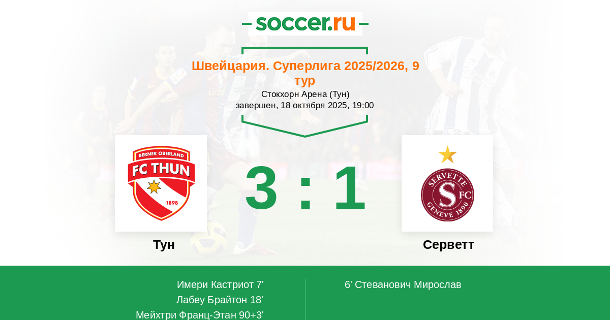 Тун - Серветт: обзор матча 18 октября 2025