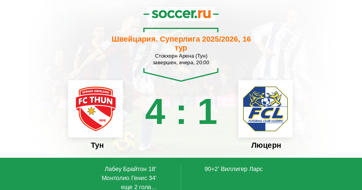 Тун - Люцерн: обзор матча 6 декабря 2025