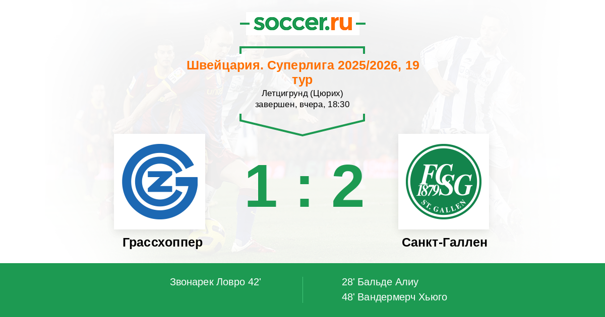 Грассхоппер - Санкт-Галлен: обзор матча 21 декабря 2025