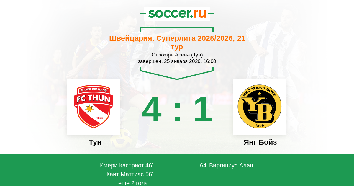Тун - Янг Бойз: обзор матча 25 января 2026