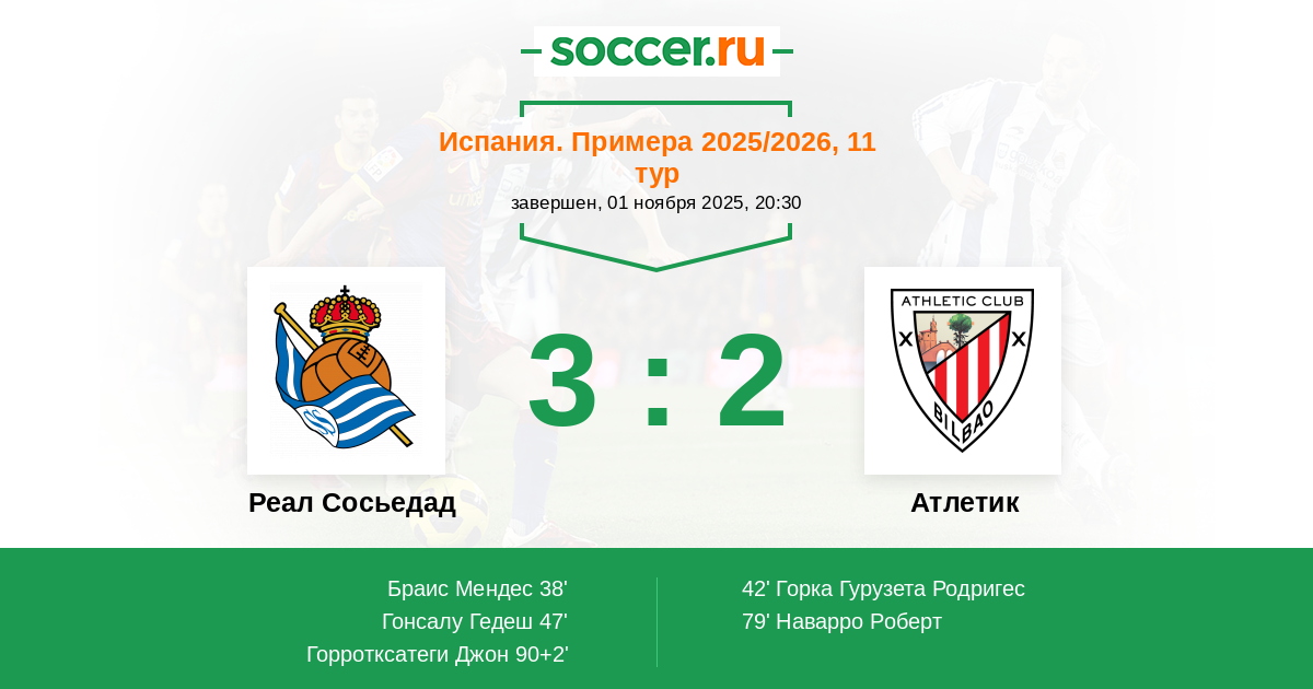 Реал Сосьедад - Атлетик: обзор матча 1 ноября 2025