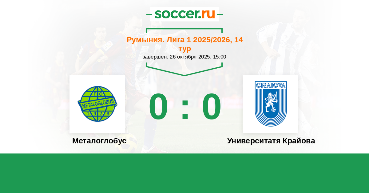 Металоглобус - Университатя Крайова: обзор матча 26 октября 2025