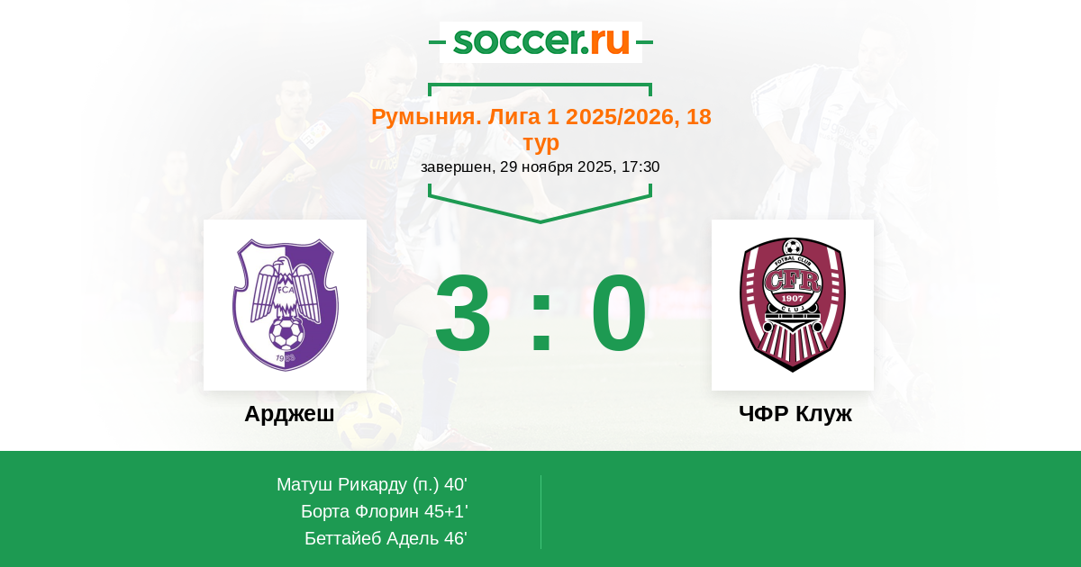 Арджеш - ЧФР Клуж: обзор матча 29 ноября 2025
