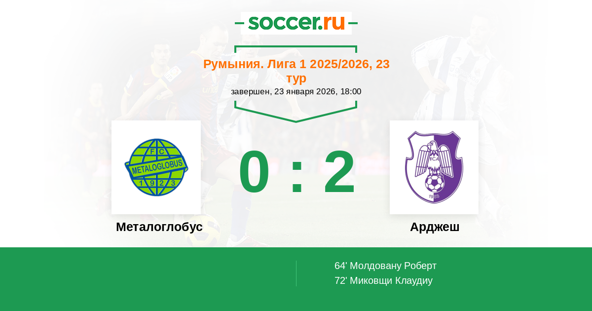 Металоглобус - Арджеш: обзор матча 23 января 2026