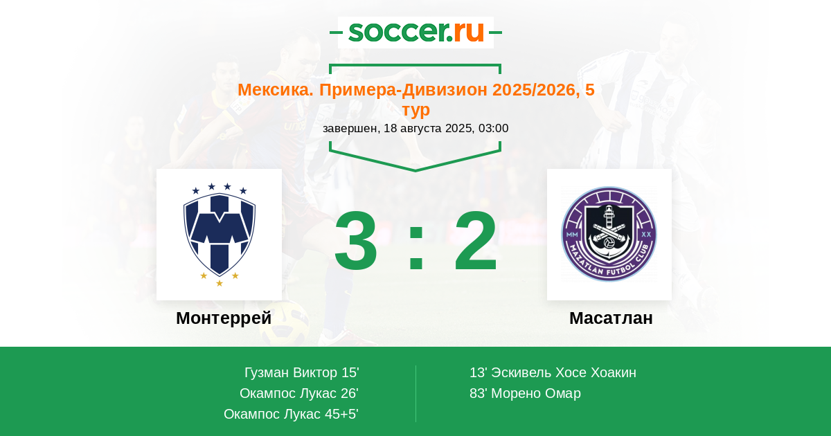 Монтеррей - Масатлан: обзор матча 18 августа 2025