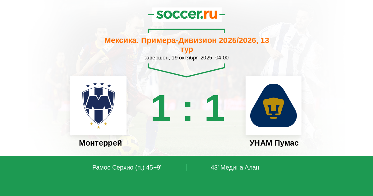 Монтеррей - УНАМ Пумас: обзор матча 19 октября 2025