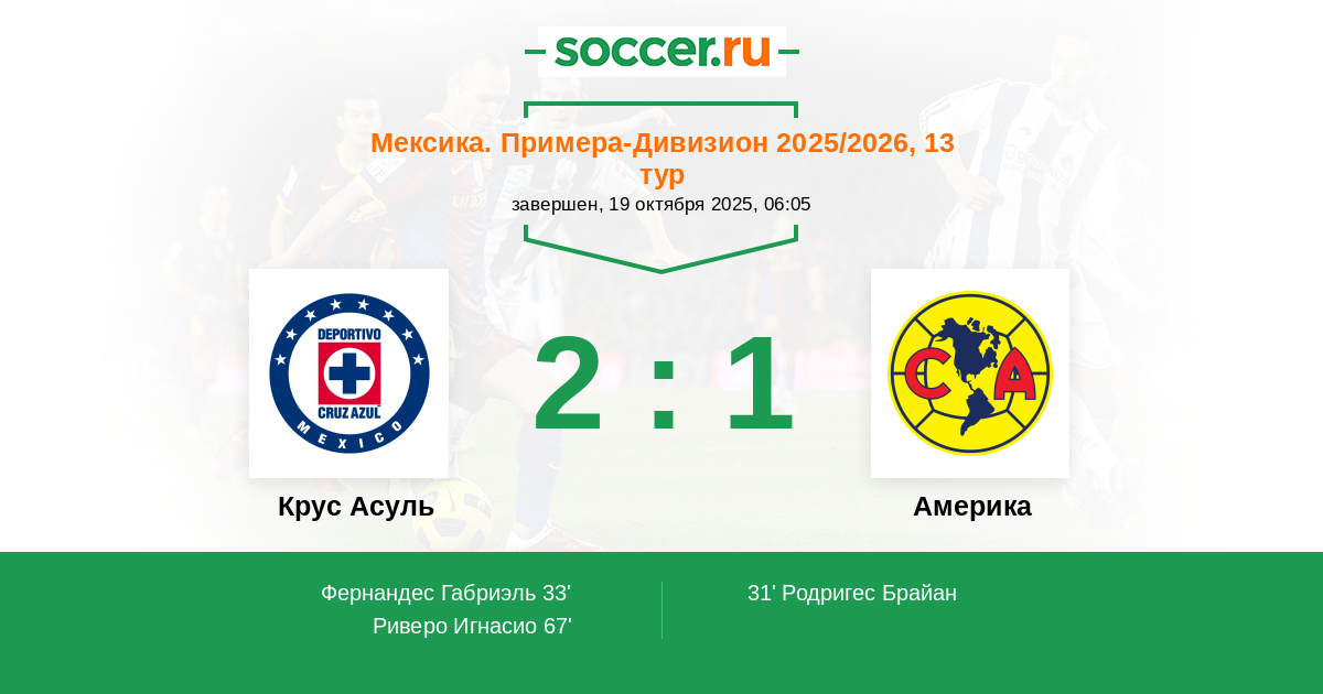 Крус Асуль - Америка: обзор матча 19 октября 2025