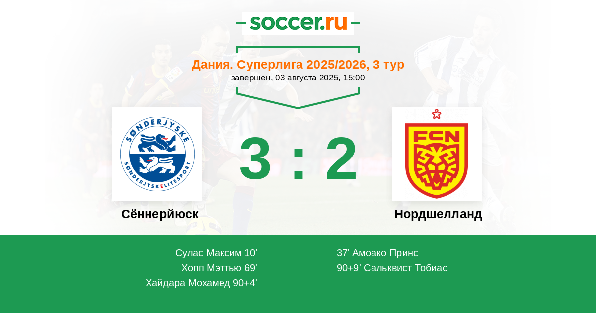 Сённерйюск - Нордшелланд: обзор матча 3 августа 2025