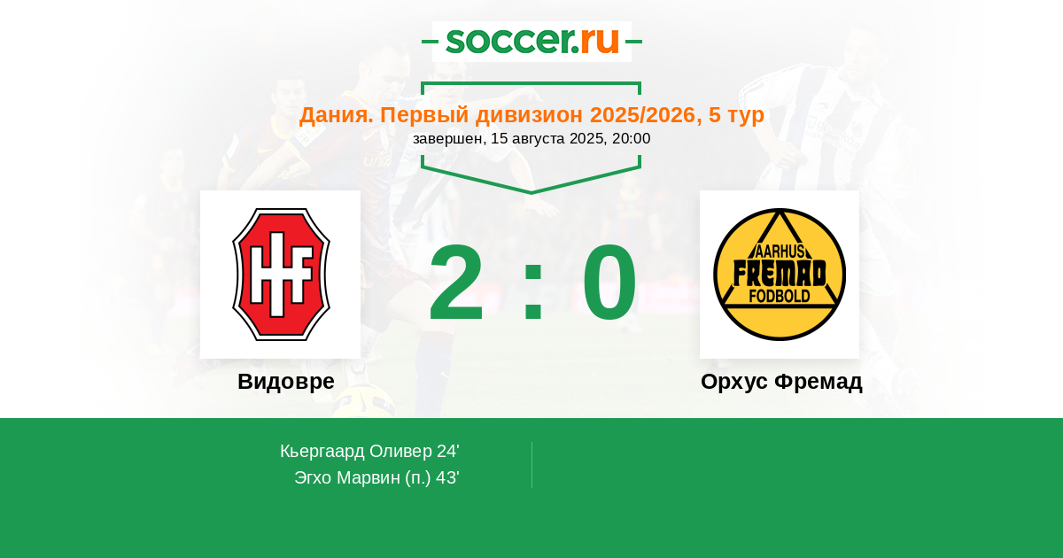 Видовре - Орхус Фремад: обзор матча 15 августа 2025