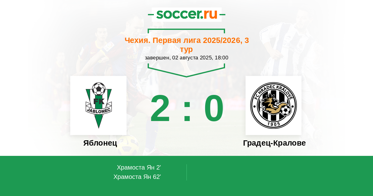 Яблонец - Градец-Кралове: обзор матча 2 августа 2025