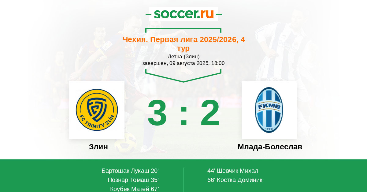 Злин - Млада-Болеслав: обзор матча 9 августа 2025