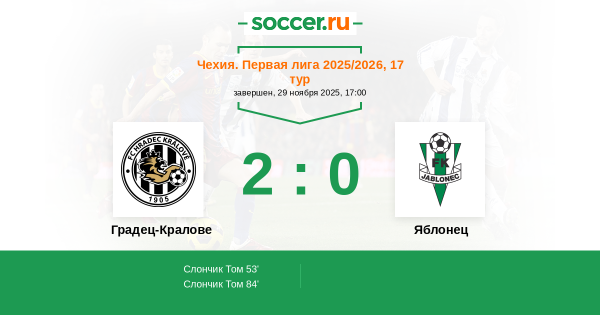 Градец-Кралове - Яблонец: обзор матча 29 ноября 2025