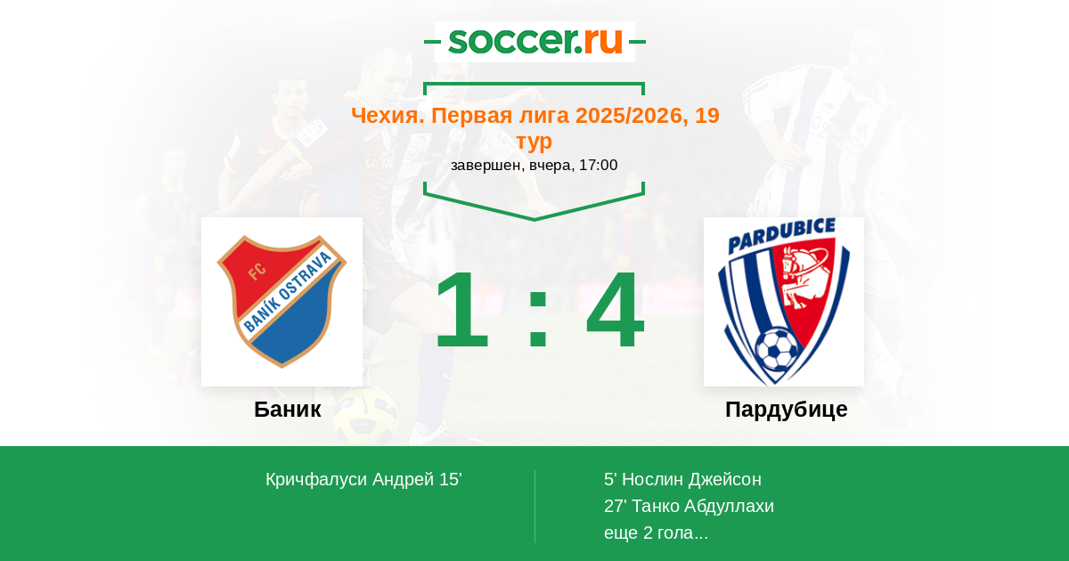 Баник - Пардубице: обзор матча 13 декабря 2025