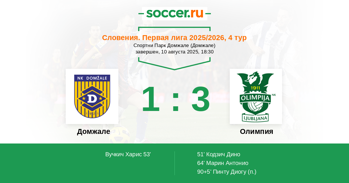 Домжале - Олимпия: обзор матча 10 августа 2025